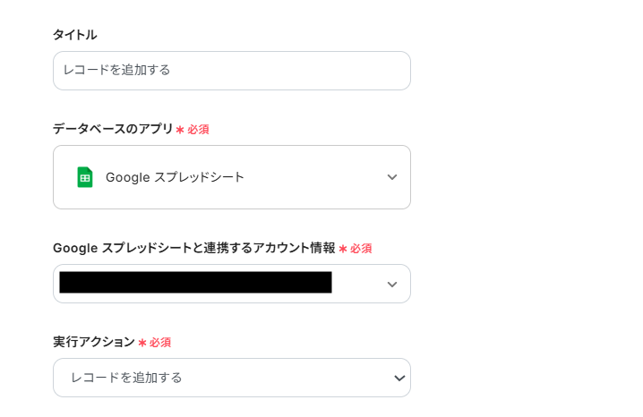 続いて、Google スプレッドシートとの連携設定を行っていきます。
