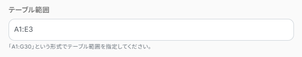 書き込み対象とするテーブルの範囲を入力してください。