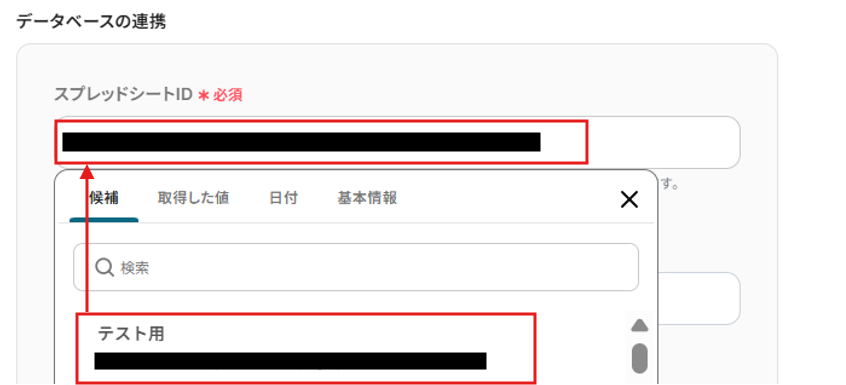 生成結果を記録したいスプレッドシートIDとタブを候補から選択します。
