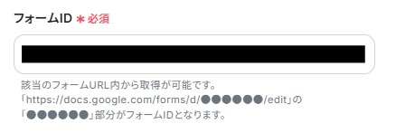 - フォームID:作成したGoogle フォームのURLから取得して入力してください。