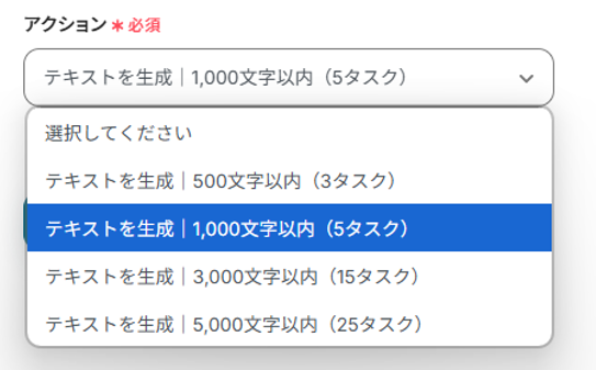 プルダウンからアクション選択を行います。