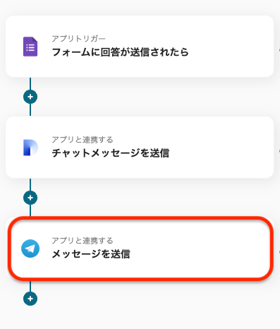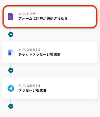 ・Googleフォームでトリガーを設定し、DifyとTelegramでアクションを設定する