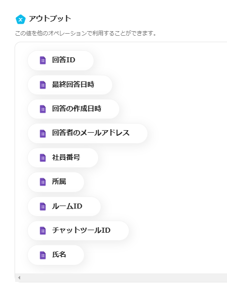 入力欄で表示されたアウトプットからGoogleフォームで回答された内容を引用することもできます。