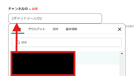 入力項目をクリックするとアウトプットが表示されるので、Googleフォームから取得した内容をクリックし入力を進めましょう。