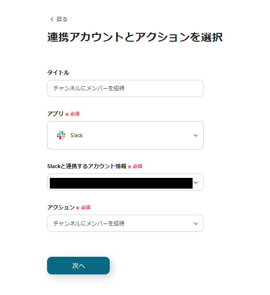 「Slackと連携するアカウント情報」→使用するアカウント