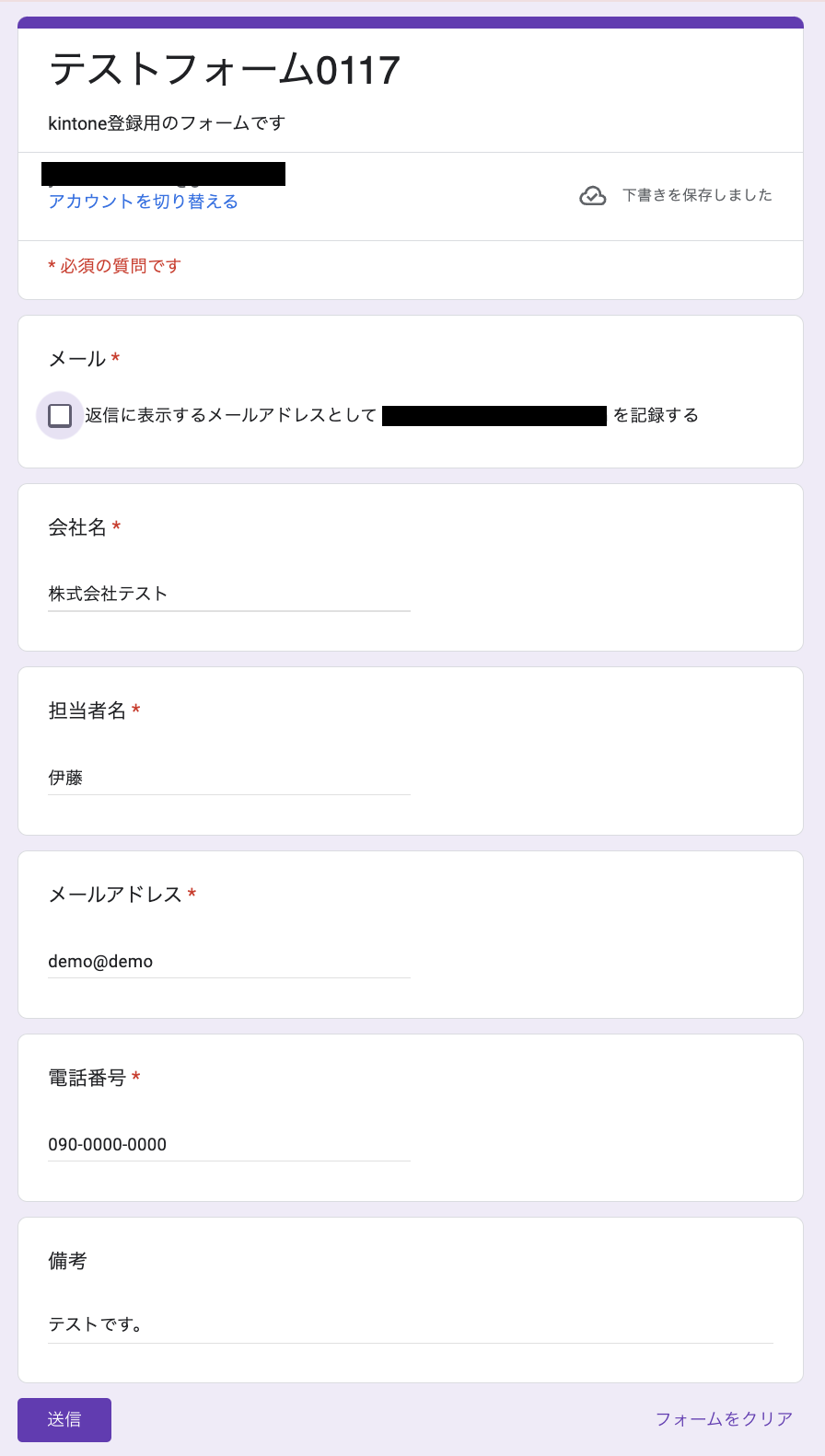 ステップ4:Googleフォームとkintoneの自動化の動作確認