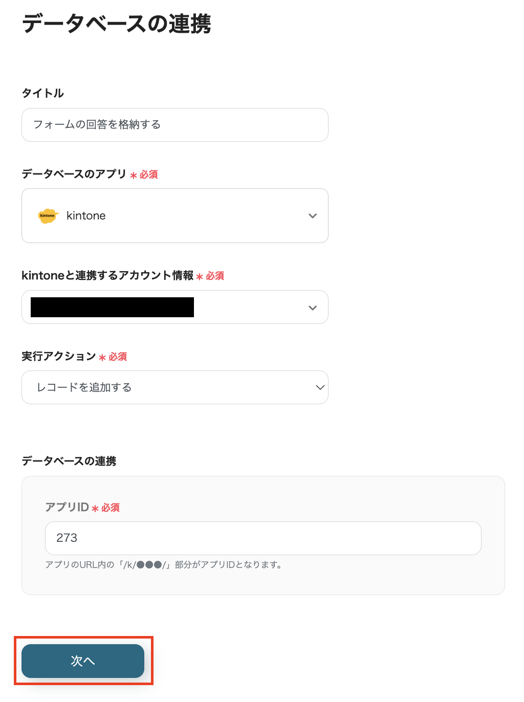 「kintoneと連携するアカウント情報」→アカウントが合っているか確認