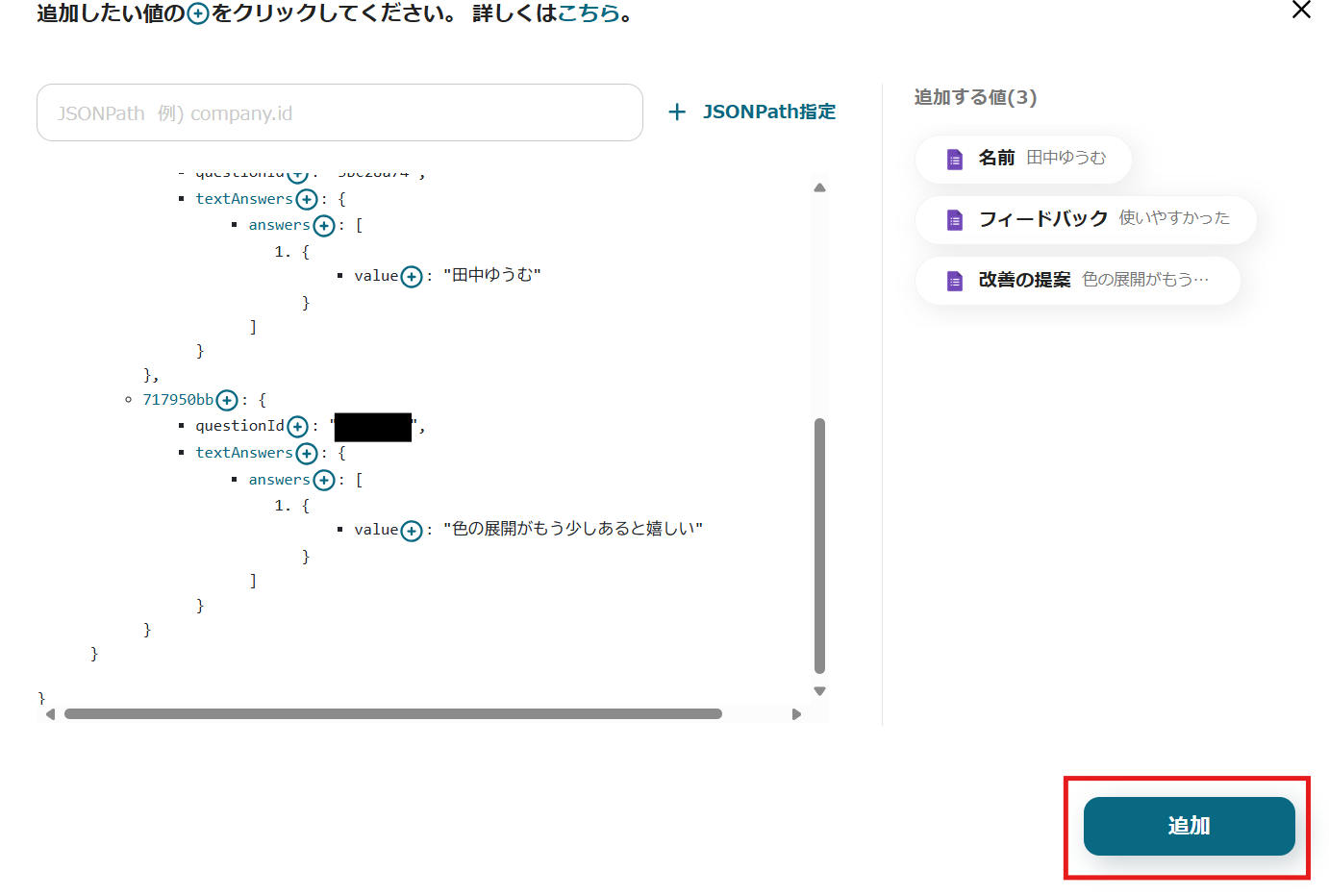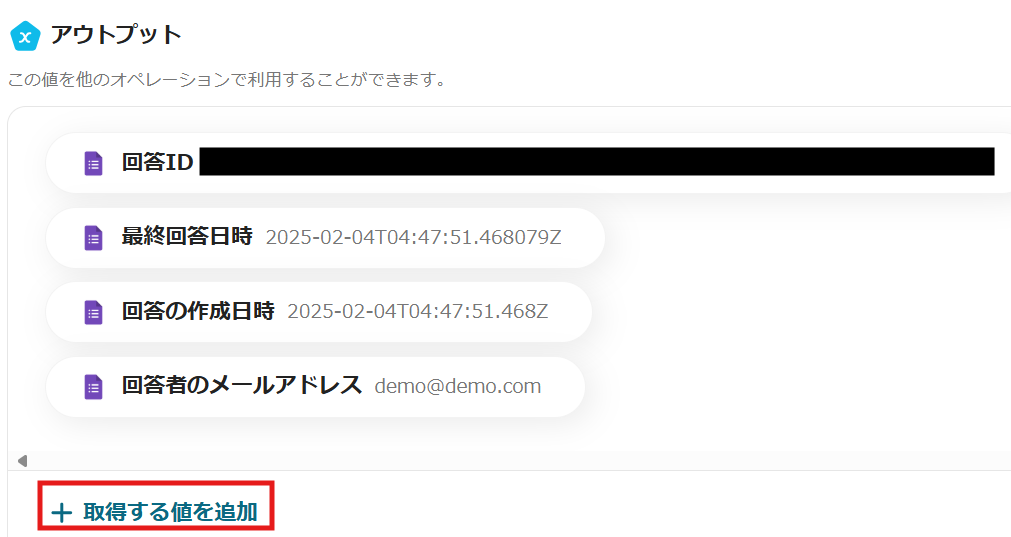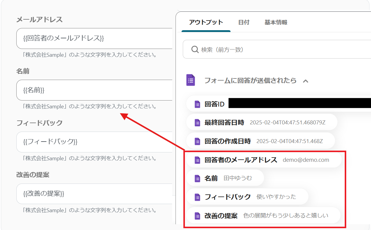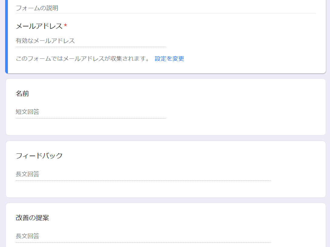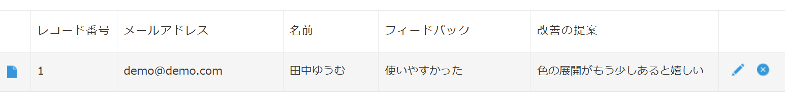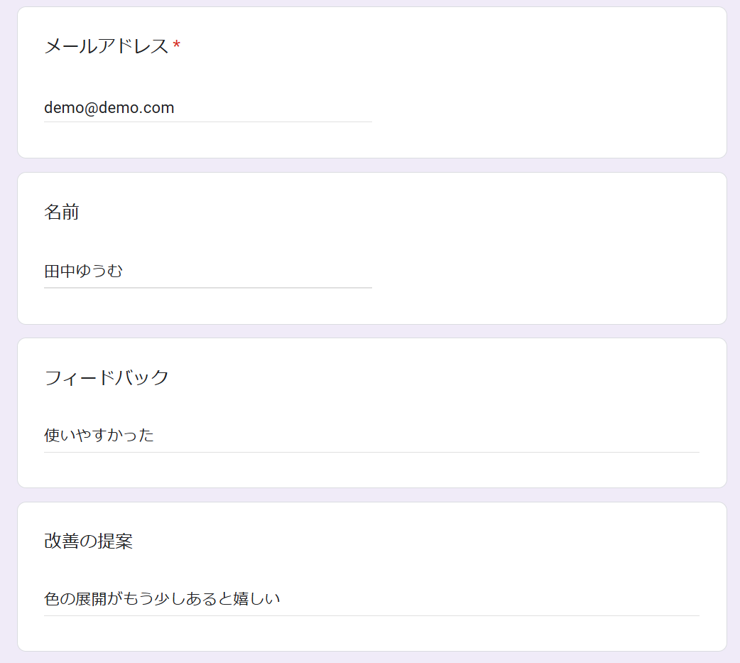 ここでGoogleフォームに、以下のようなサンプル回答をします。