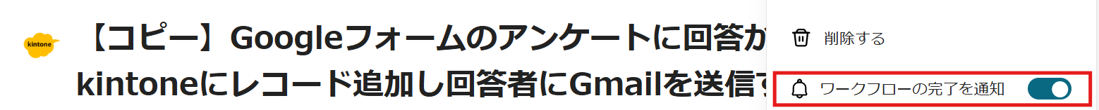 こちらをオンにすると、フローボットが完了した通知を受け取れます。