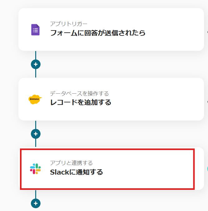 例えば、Googleフォームで申し込みを受け付けたらすぐにkintoneに自動登録し、Gmailで受付確認メールを送信するフローを構築できます。