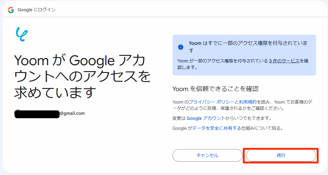 こちらも連携アカウントと確認し、次に進みます。