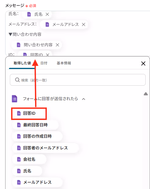 図のように表示されるので、取得したい回答内容の隣にある+マークをクリックします。