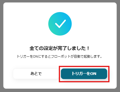 最後に「トリガーをON」をクリックすると、自動化の設定は完了です。