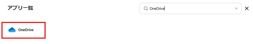 先ほどと同様に、検索窓にOneDriveと入力し、表示された候補から「OneDrive」を選択します。