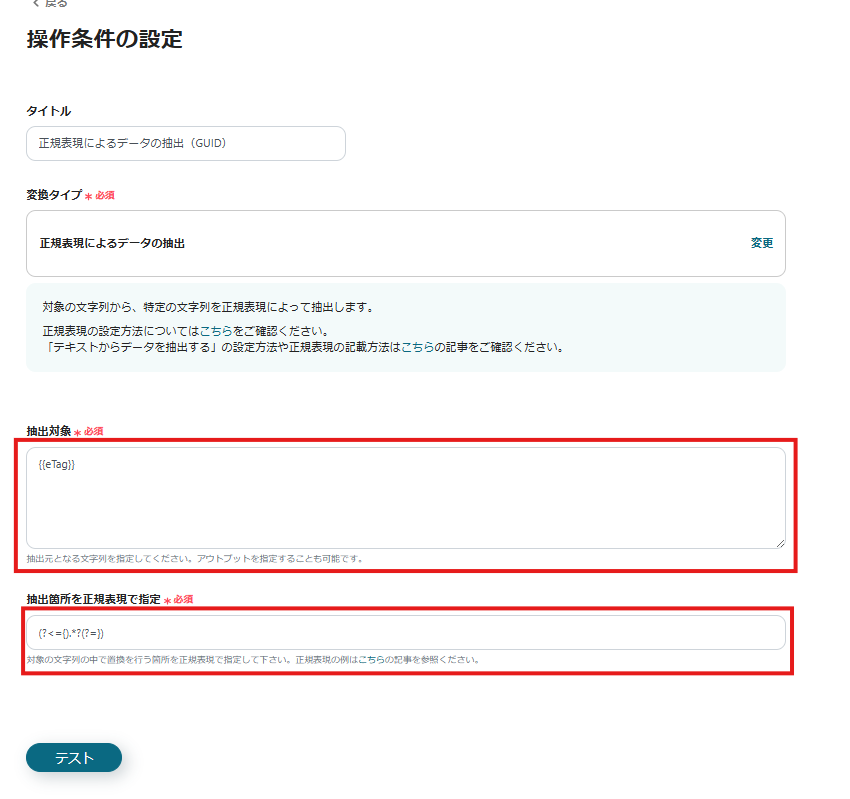 次に、「正規表現によるデータの抽出(GUID)」の設定を行います。