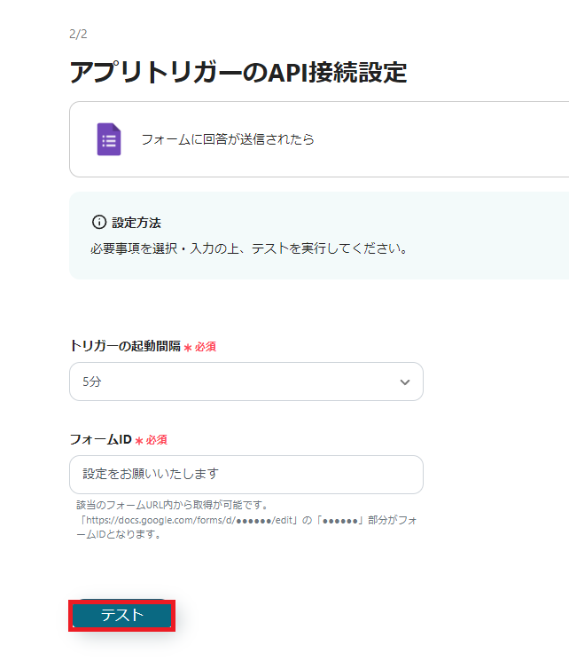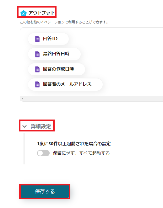 ※Googleフォームをトリガーとして使用した際の回答内容を取得する方法はこちらを参照してください。