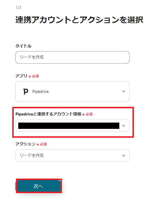 次に「リードを作成」を選択して、連携するアカウント情報を入力してください。