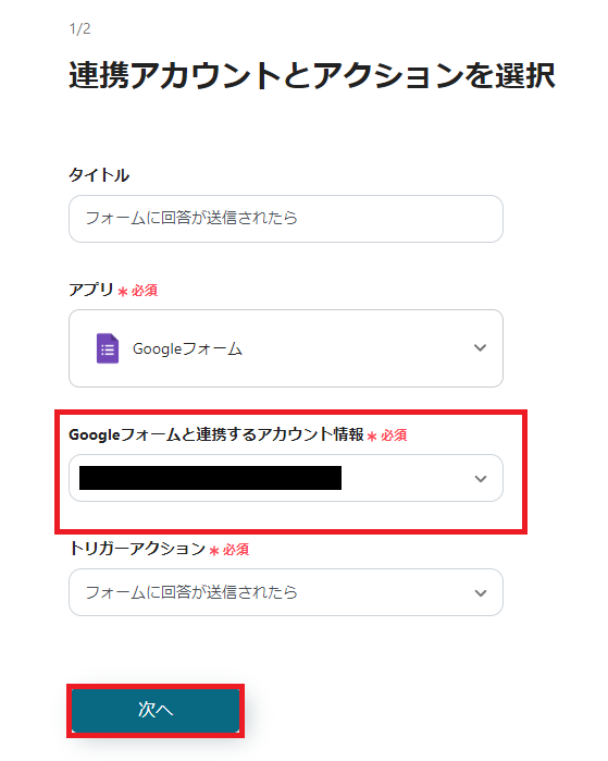 まずは「フォームに回答が送信されたら」を選択して、設定の確認をしていきます。