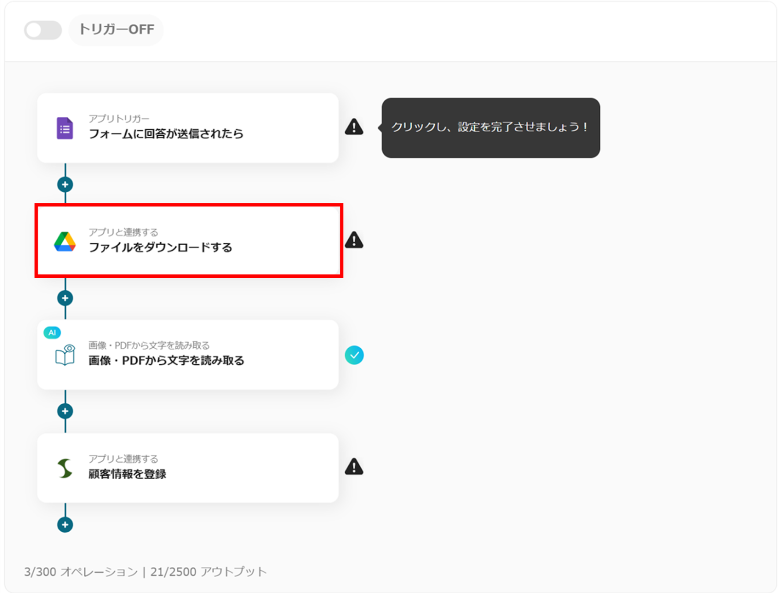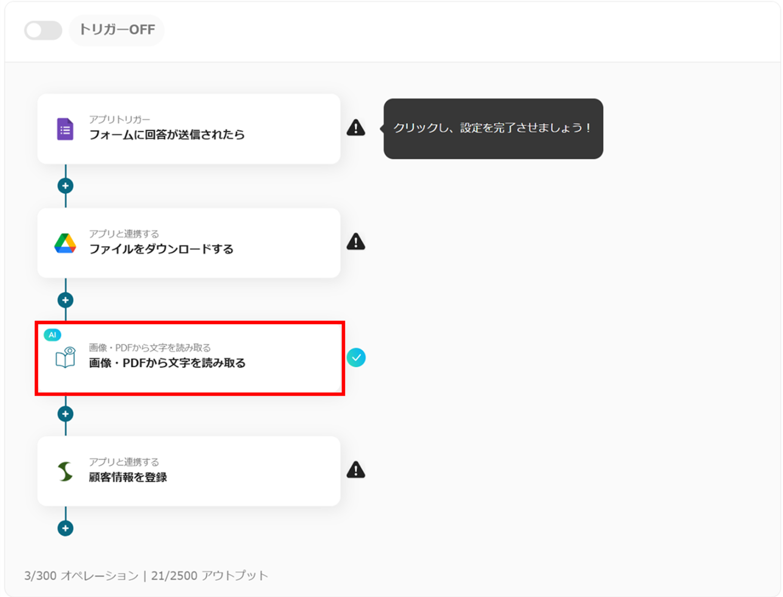 ※AIオペレーションは一部有料プランのみ利用できる機能です。他のプランで設定しているフローボットのオペレーションはエラーとなるので、ご注意ください。有料プランは、2週間の無料トライアルを行うことが可能です。無料トライアル中には制限対象のアプリやAI機能(オペレーション)を使用することができるので、この機会にお試しください。