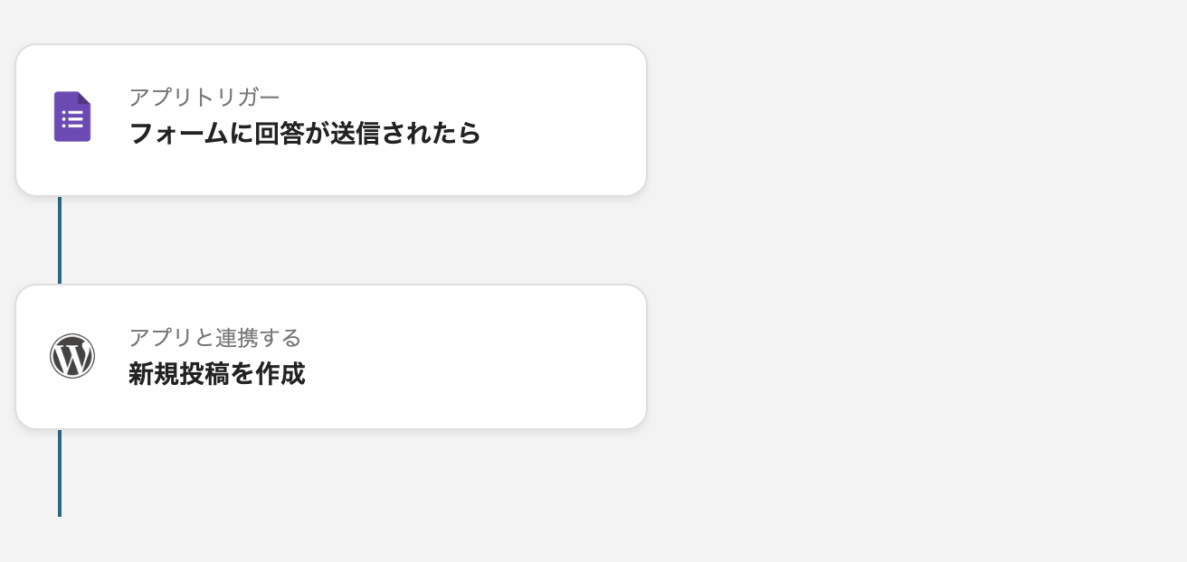 Googleフォームの内容を用いてWordpressで記事を新規投稿するフローです。