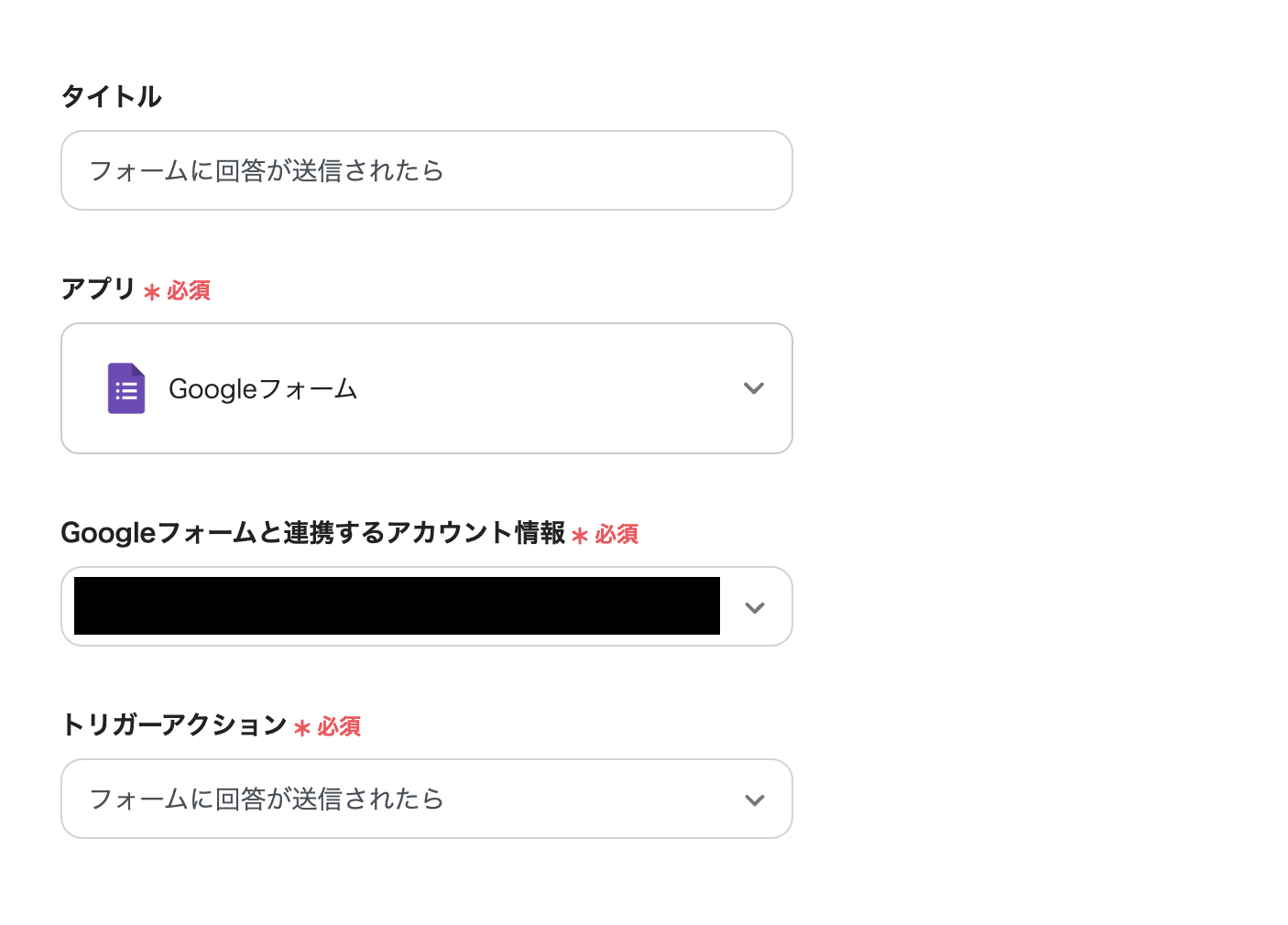 (1)まず、Googleフォームのアプリトリガーを設定します。