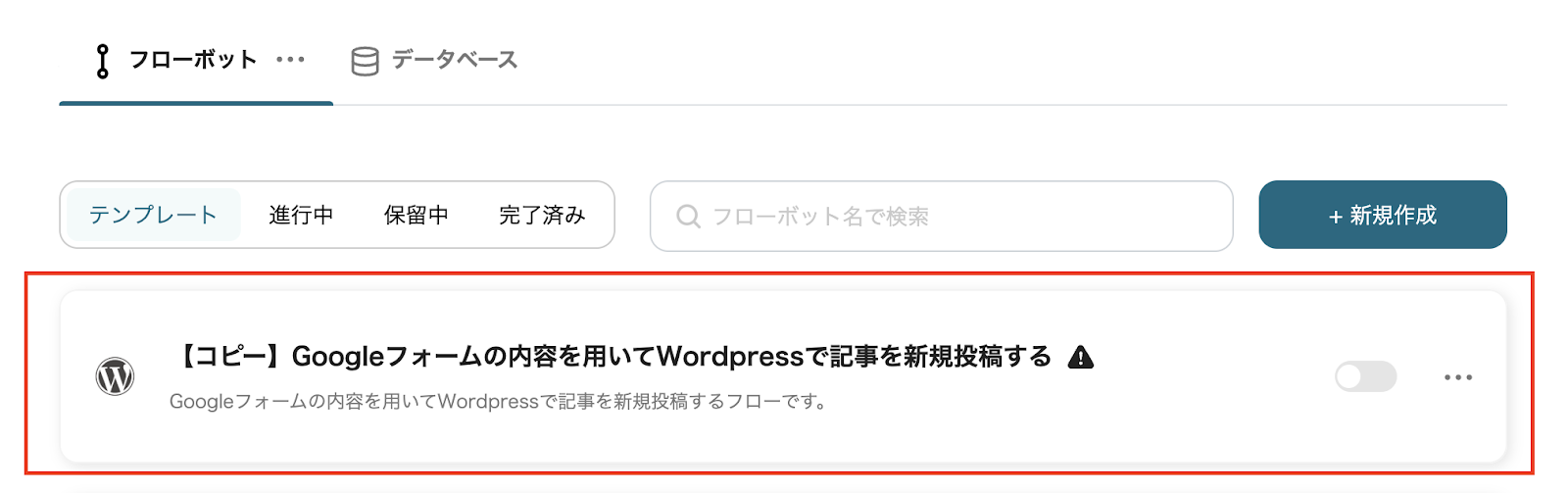 それでは、実際に「Googleフォームの内容を用いてWordPressで記事を新規投稿する」のテンプレートを使ったフローボットを作成していきましょう。