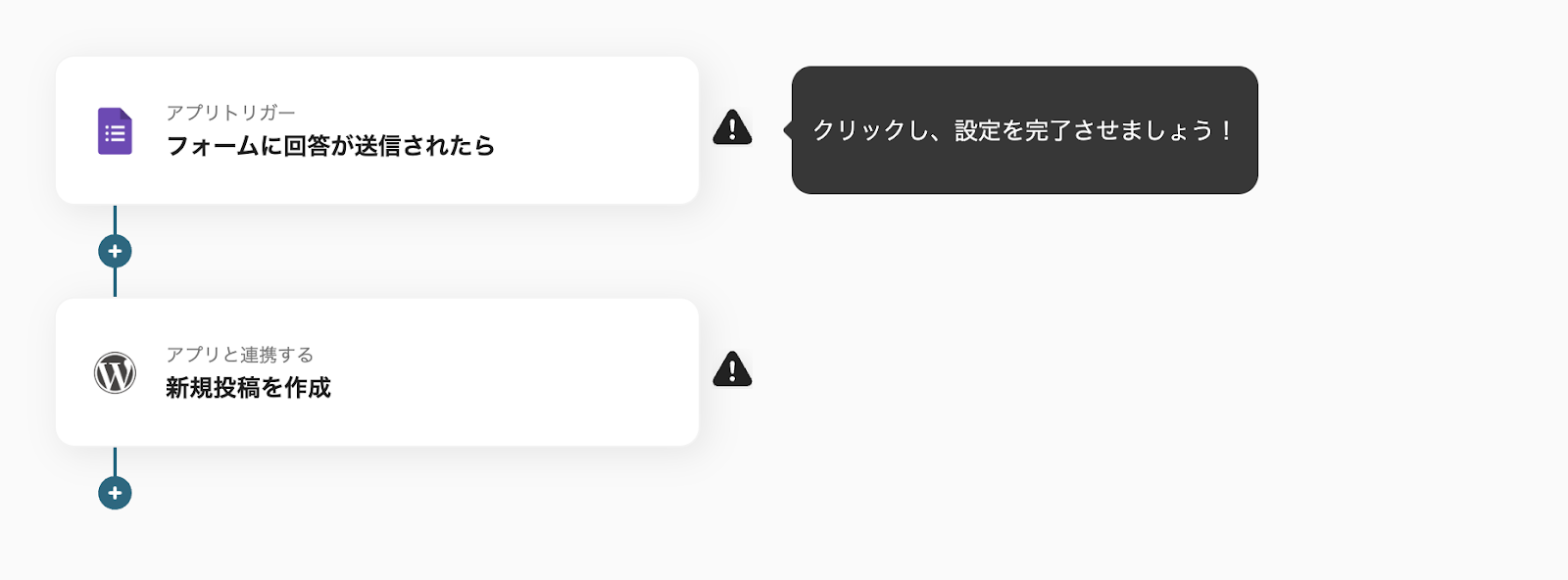 ・GoogleフォームとWordPressのそれぞれとYoomを連携してください。