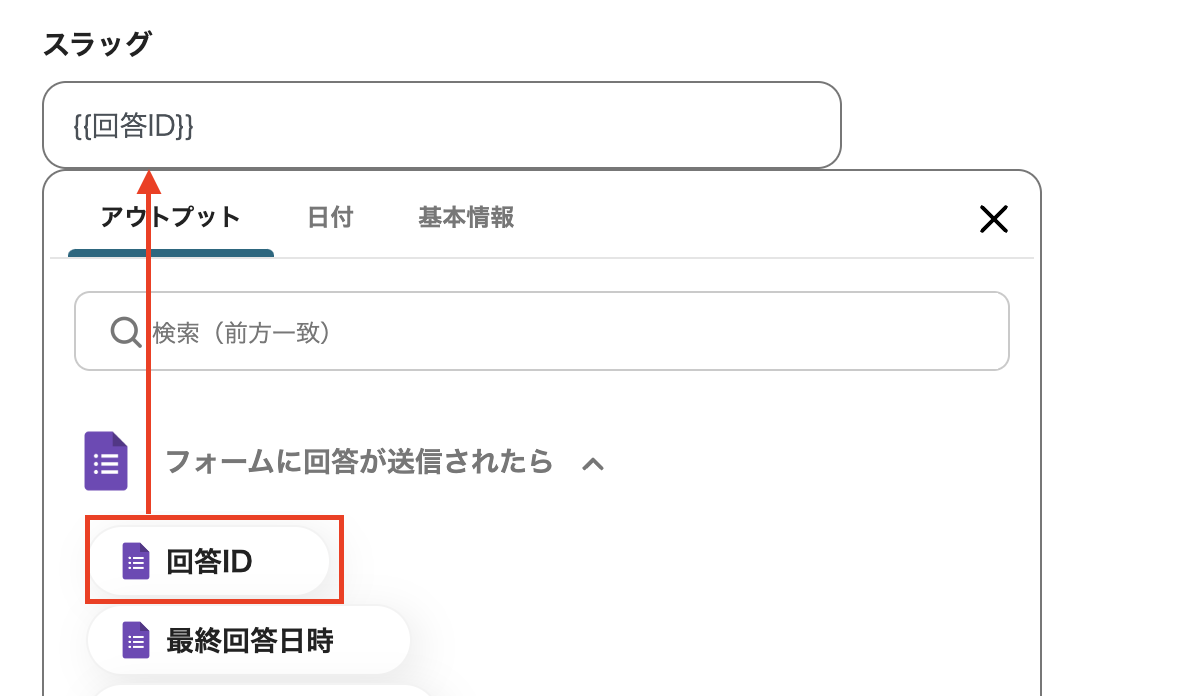 ・Googleフォームをトリガーとして使用した際の回答内容を取得する方法は下記を参照ください。