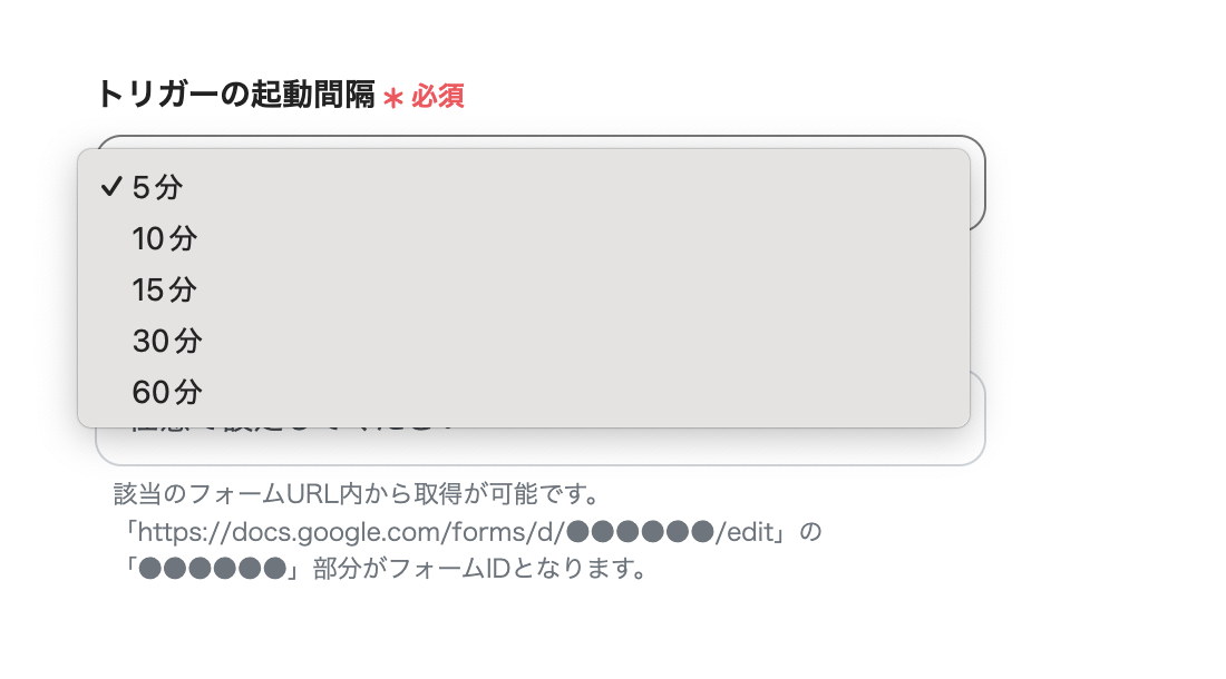 ・トリガーは5分、10分、15分、30分、60分の間隔で起動間隔を選択できます。