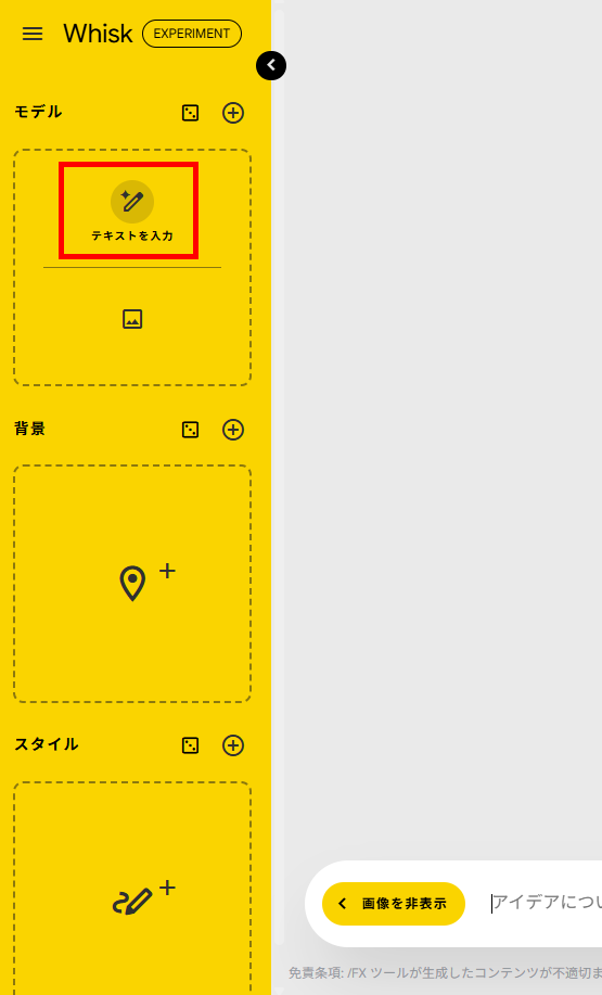 実験ツールのため予告なく制限が変更される可能性はありますが、アイデア出しの段階では、まずWhiskで大量のバリエーションを出し、自分の予想を超えた組み合わせを見つけるのが効率的です。