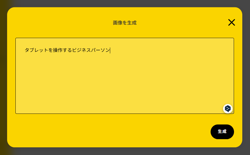 今回は、テキストでモデルなどを指定するため、内容を入力して「生成」をクリックしました。