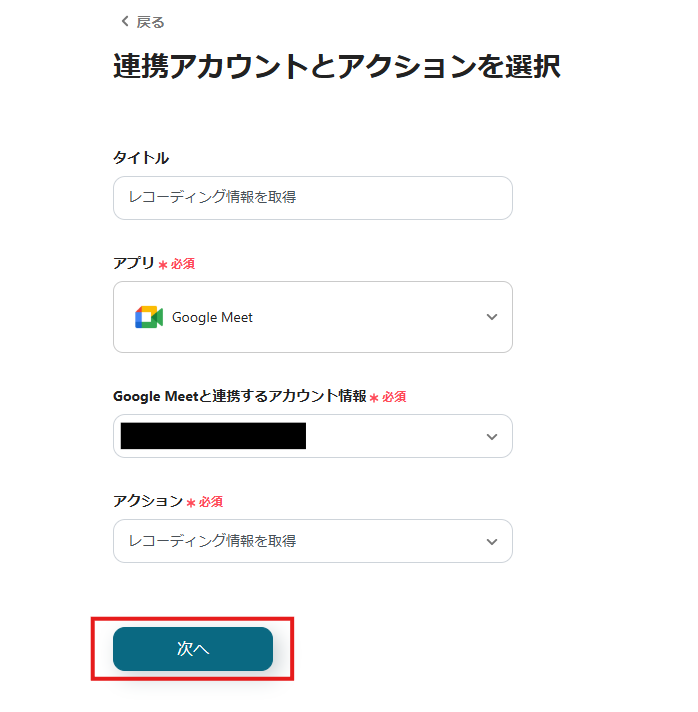 5.アプリと連携する「レコーディング情報を取得」をクリックしてください。