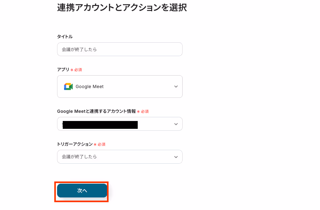 連携するアカウント情報が入力されていることを確認して「次へ」を押します。