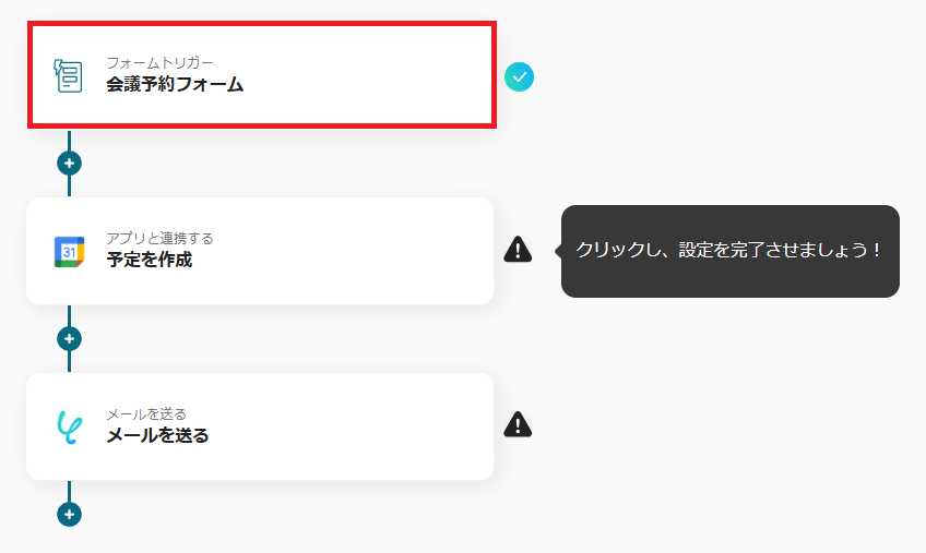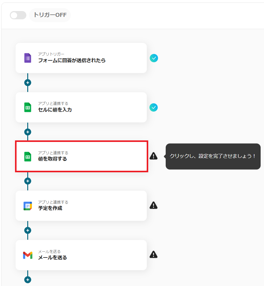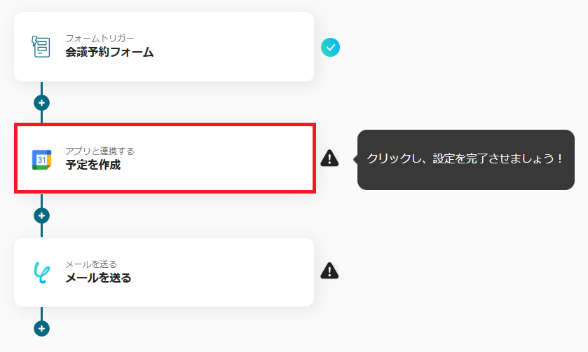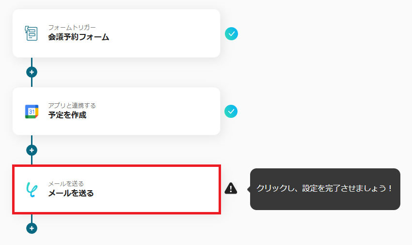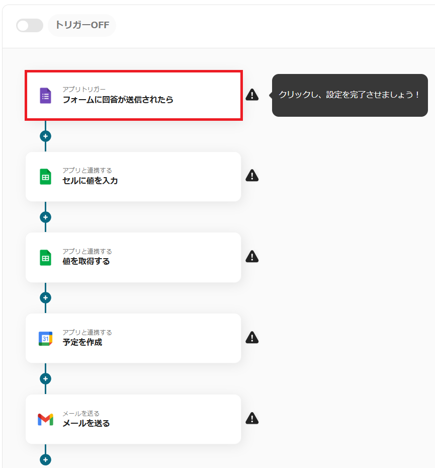 フォームが送信されたら、Googleカレンダーで予定を作成してメールでリンクを送信するフローです。
