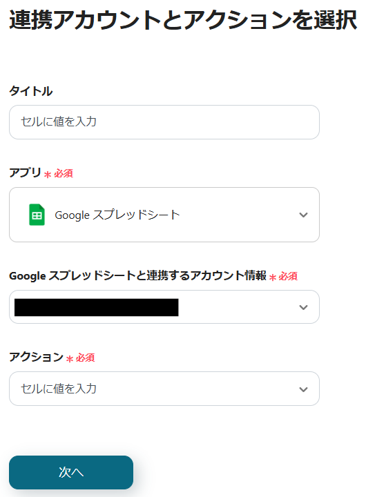 ・Google スプレッドシートと連携するアカウントを確認し、「次へ」をクリックします。