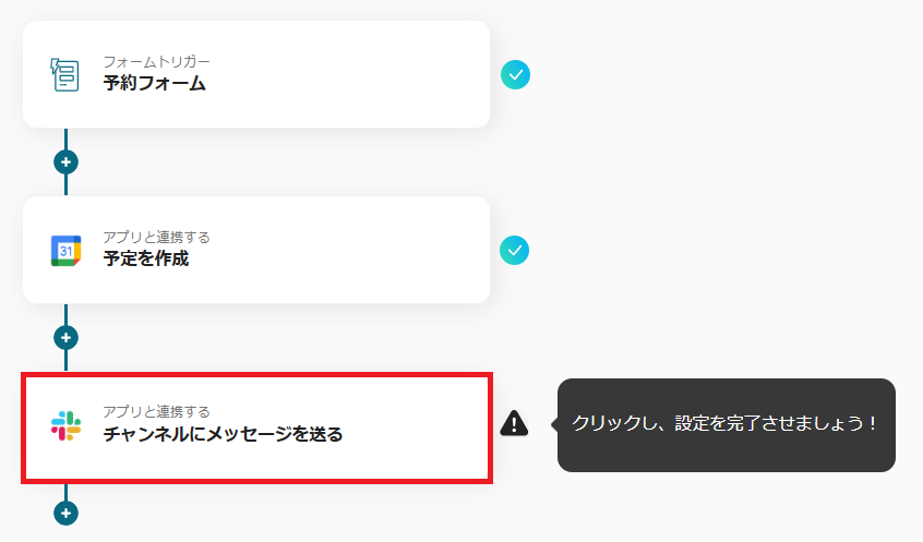 ・Googleフォームに回答が行われたら、Googleカレンダーに予定を追加しSlackにその旨を通知するフローです。
