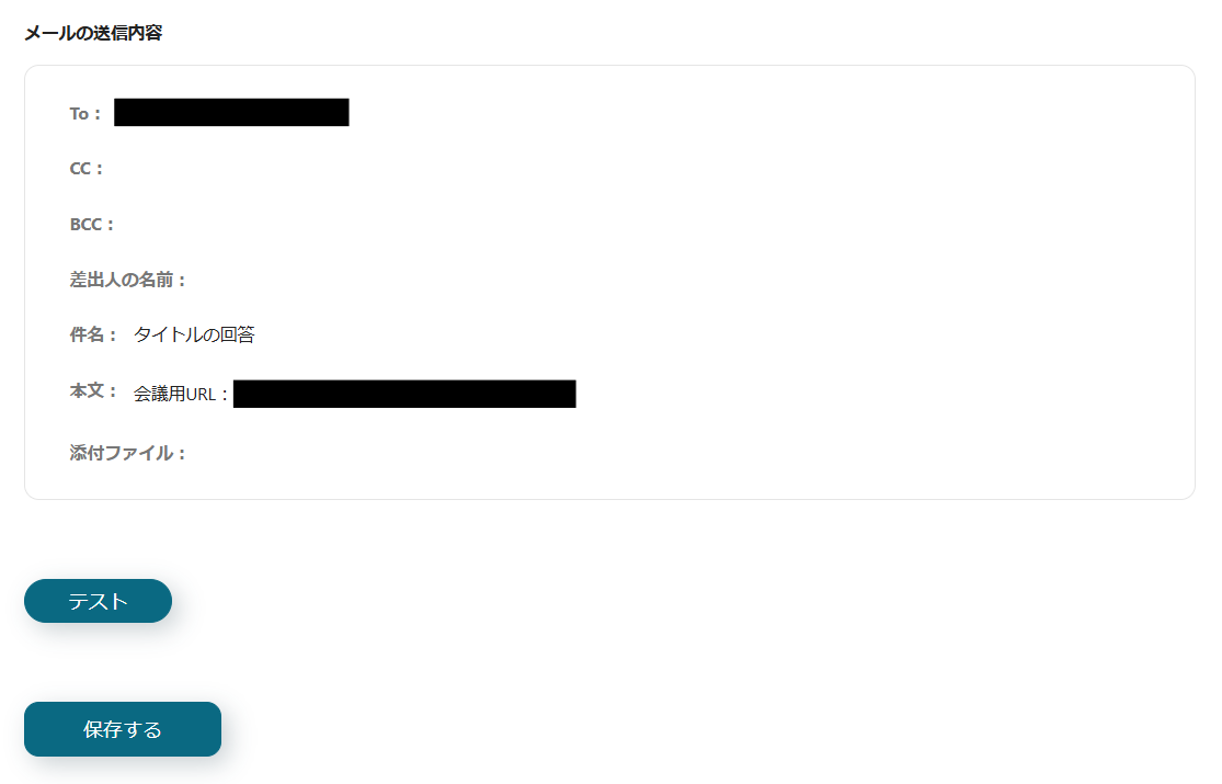 最後に、Yoomのメール機能を利用して、送信するメールの設定を行います。