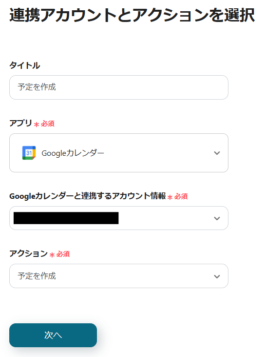 2.Googleカレンダーと連携するアカウントを確認し、「次へ」をクリックします。