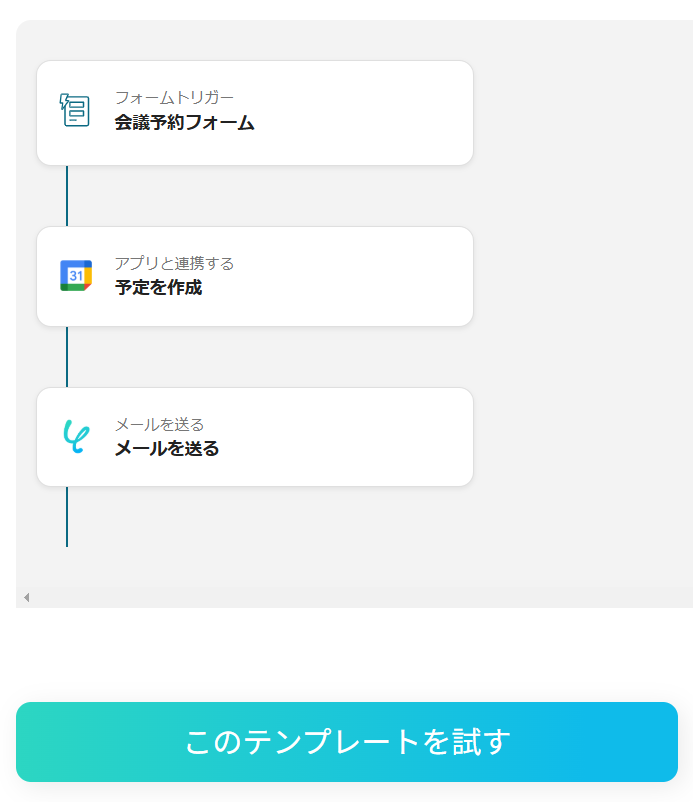 この方法は、GoogleカレンダーのAPIを利用して予定の登録と会議リンクの作成を行い、Yoomが提供するメール機能で連絡することで実現可能です。