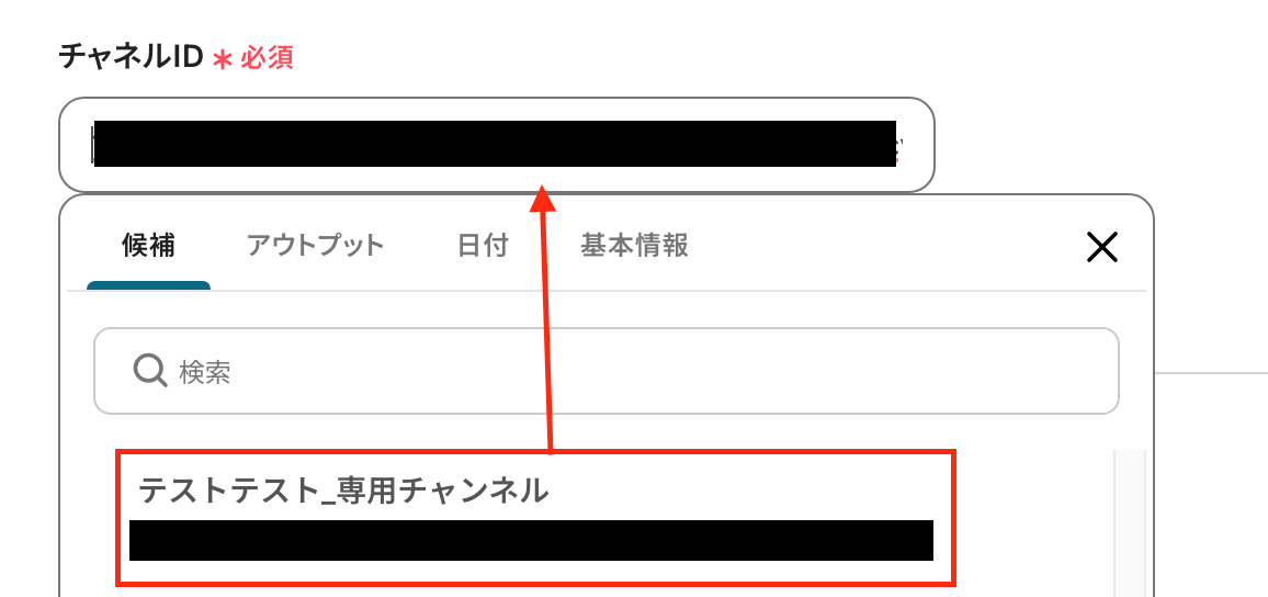 ※以下の画像は、「チャンネルID」の項目で、候補から設定したものです。