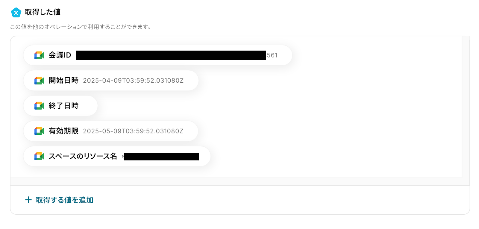 問題がなければ、「保存」をクリックしましょう。これで、Google Meetのトリガー設定は完了です!ここで取得した値を次以降のステップで活用します。