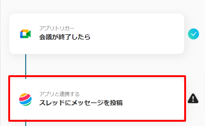 スレッドIDは候補から選択、メッセージ内容はGoogle Meetの設定で取得したアウトプットを使って設定しましょう。