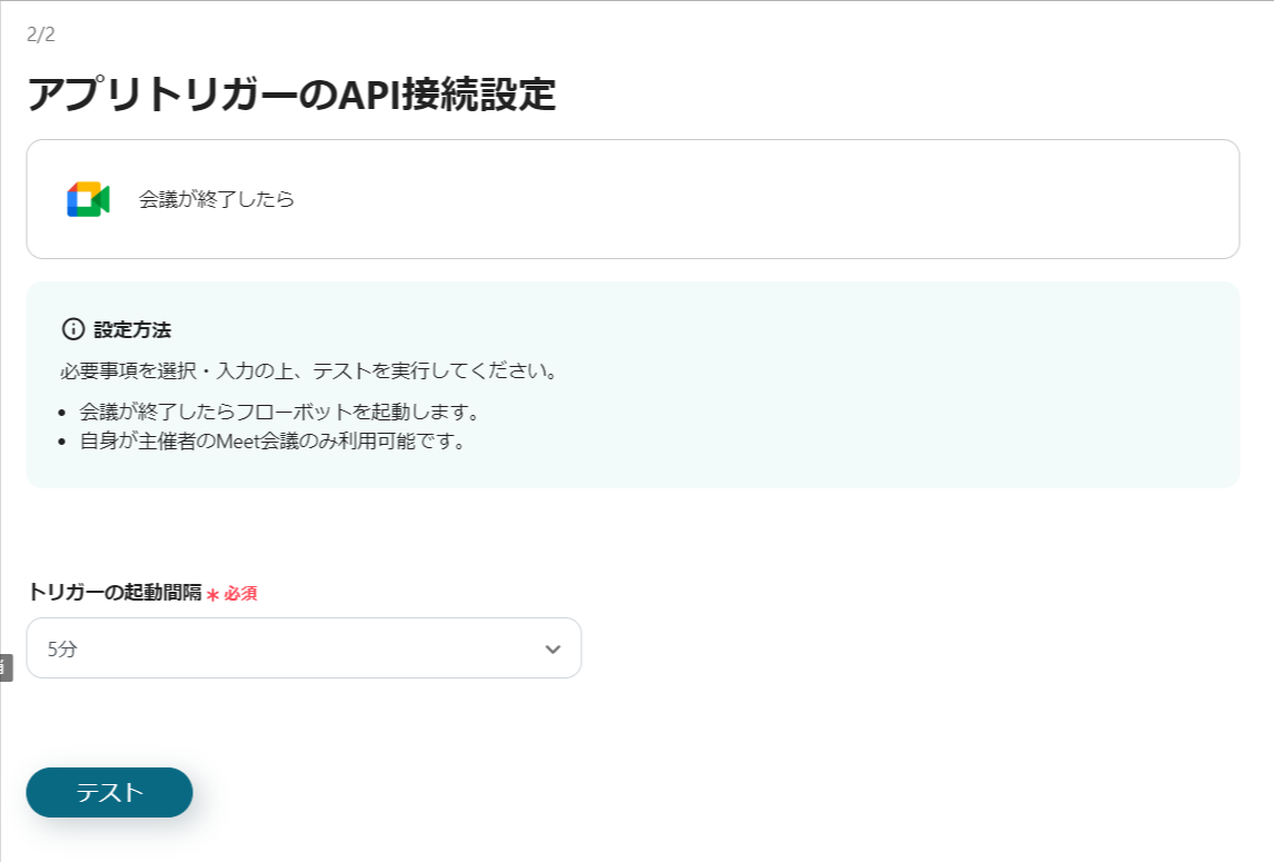 今回のフローは「Google Meetで会議が終了したらTalknoteに通知する」というものです。