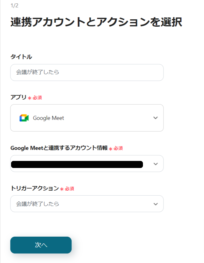 アカウント情報が確認出来たら「次へ」をクリックしてください。