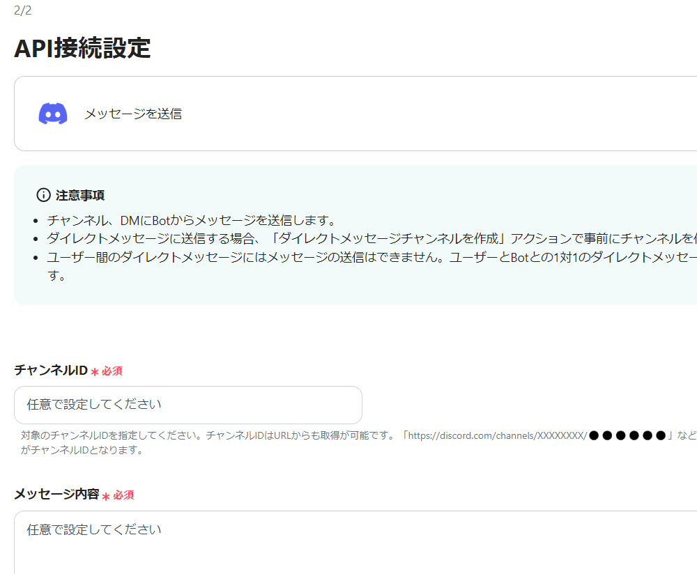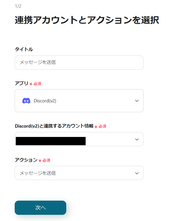・その後、Discordで「メッセージを送信」というアクションを設定します。