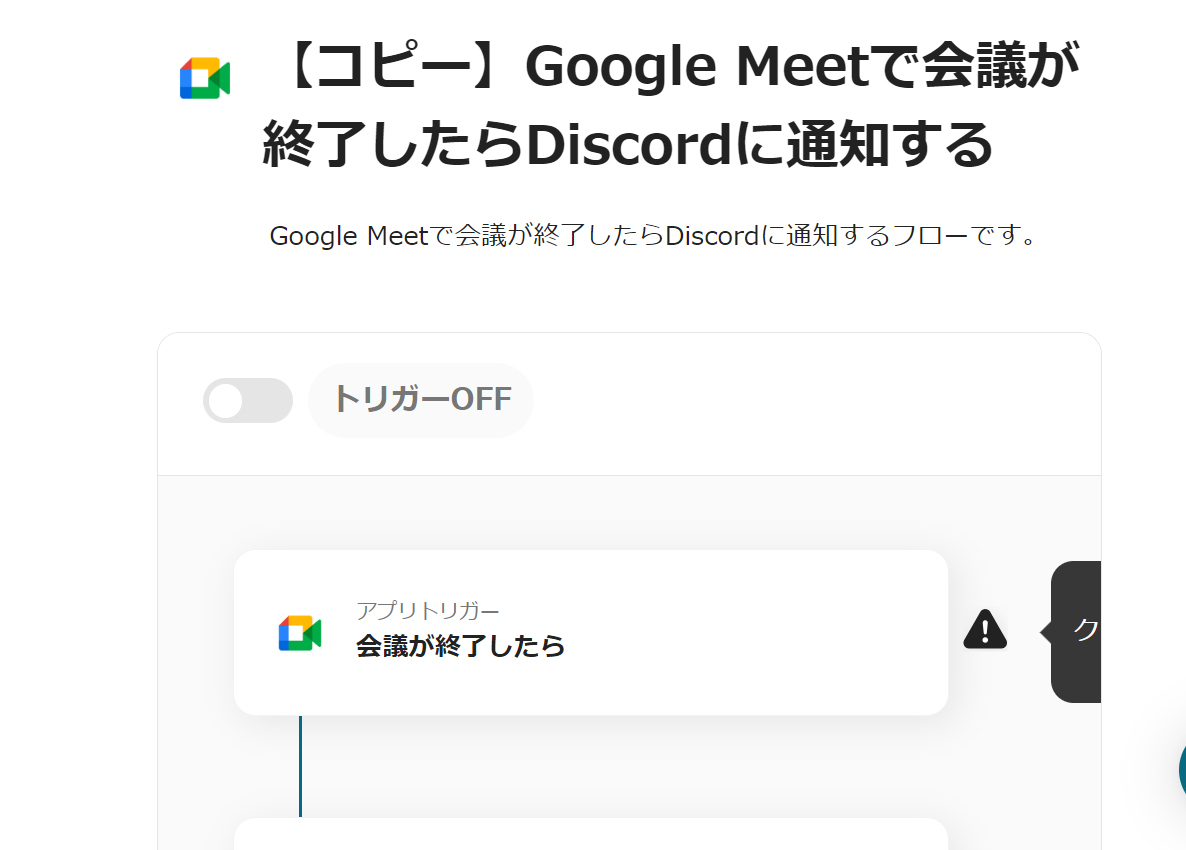 今回は、【Google Meetで会議が終了したらDiscordに通知する】というフローを作成します。