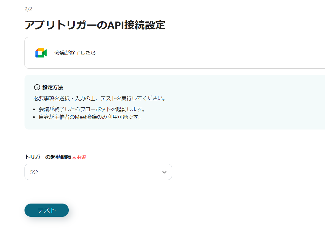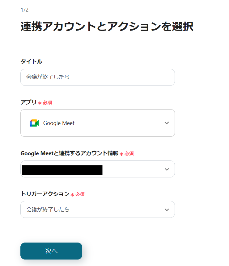 ・Google Meetで「会議が終了したら」というトリガーを作成します。