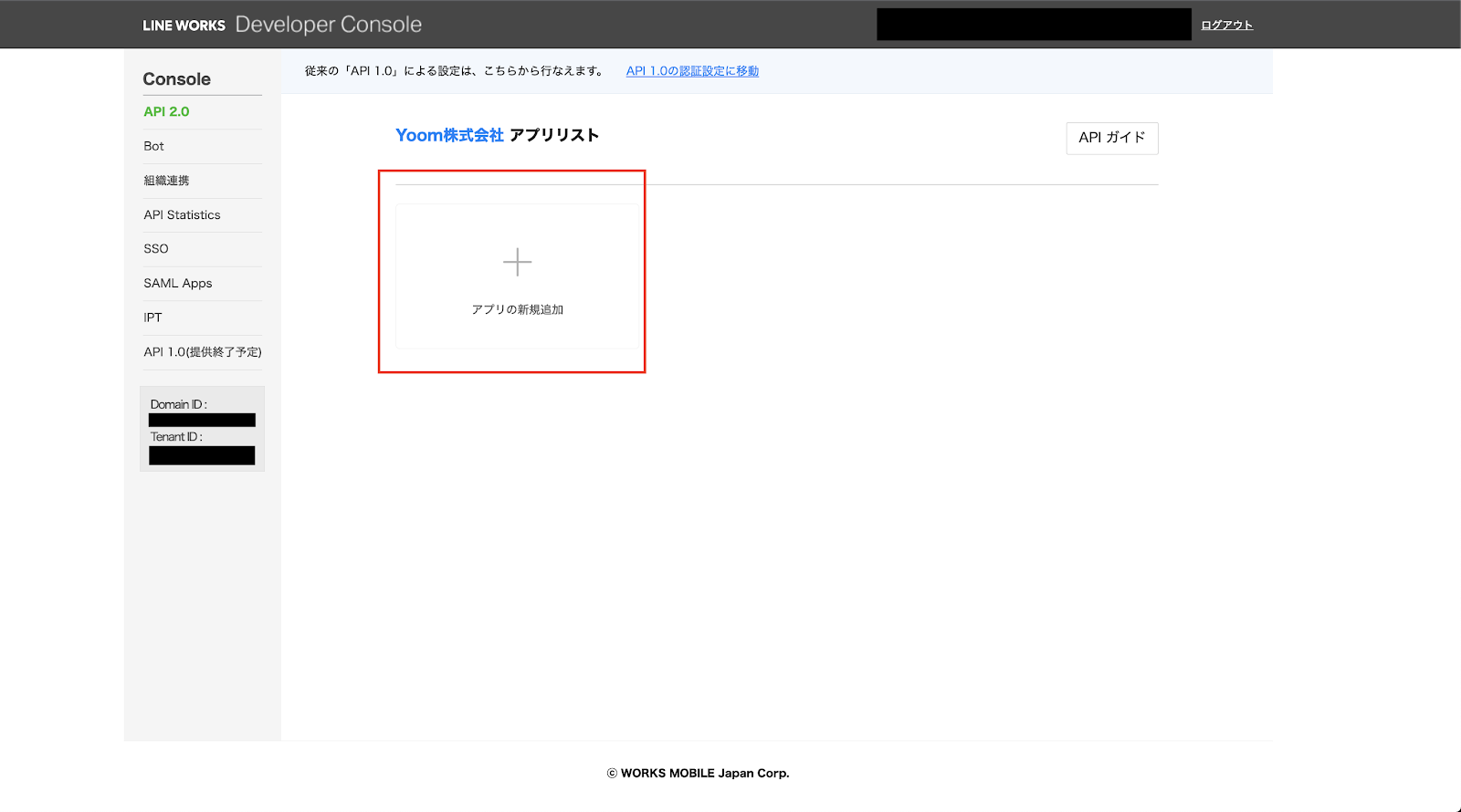 LINE WORKS(API2.0)のマイアプリ登録方法 | Yoomヘルプセンター