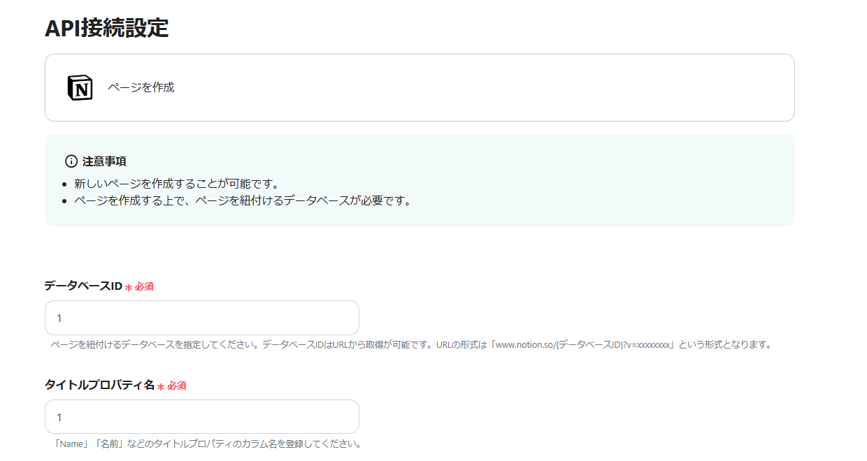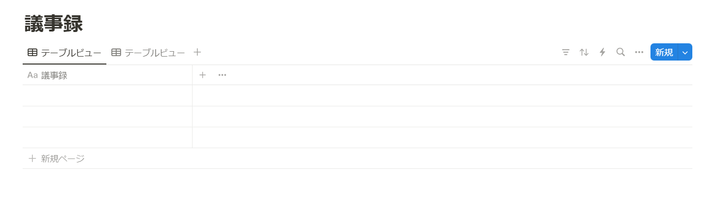2)このフローは、文字起こしした議事録を基にNotionに自動追加するため、事前に追加するNotionのデータベースを準備する必要があります。