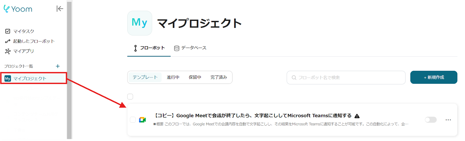 これらの手動プロセスでは限界があり、さらなる効率化を求める企業には、Yoomのようなノーコード自動化ツールが有効です。Yoomを使えば、Google Meetの会議終了後に自動で文字起こしを行い、そのデータを迅速に必要なチームメンバーに通知できます。